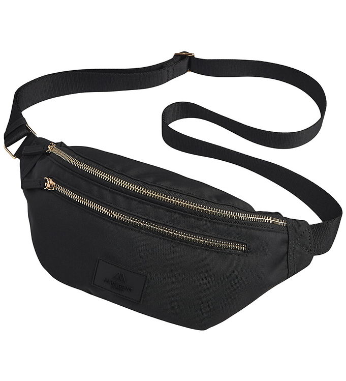 Style Naxos m. lynlåse i guld: Eksklusiv bumbag taske i smukt sort læder med fantastisk flotte lynlåse og ringe i guld